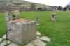 On pastoral land on the South side of an un-named minor road, opposite the entrance to a cemetery.